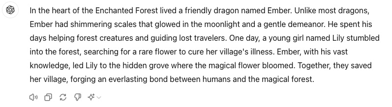 Prompt: “Using no more than 150 words, write a short story about a magical forest, with a friendly dragon as a character.”