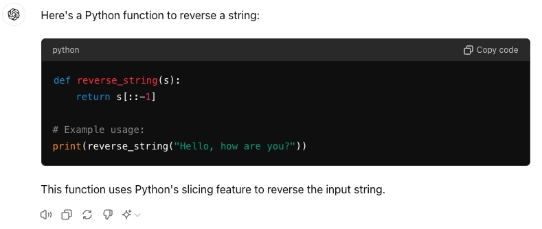 Prompt: “Write a Python function to reverse a string.”